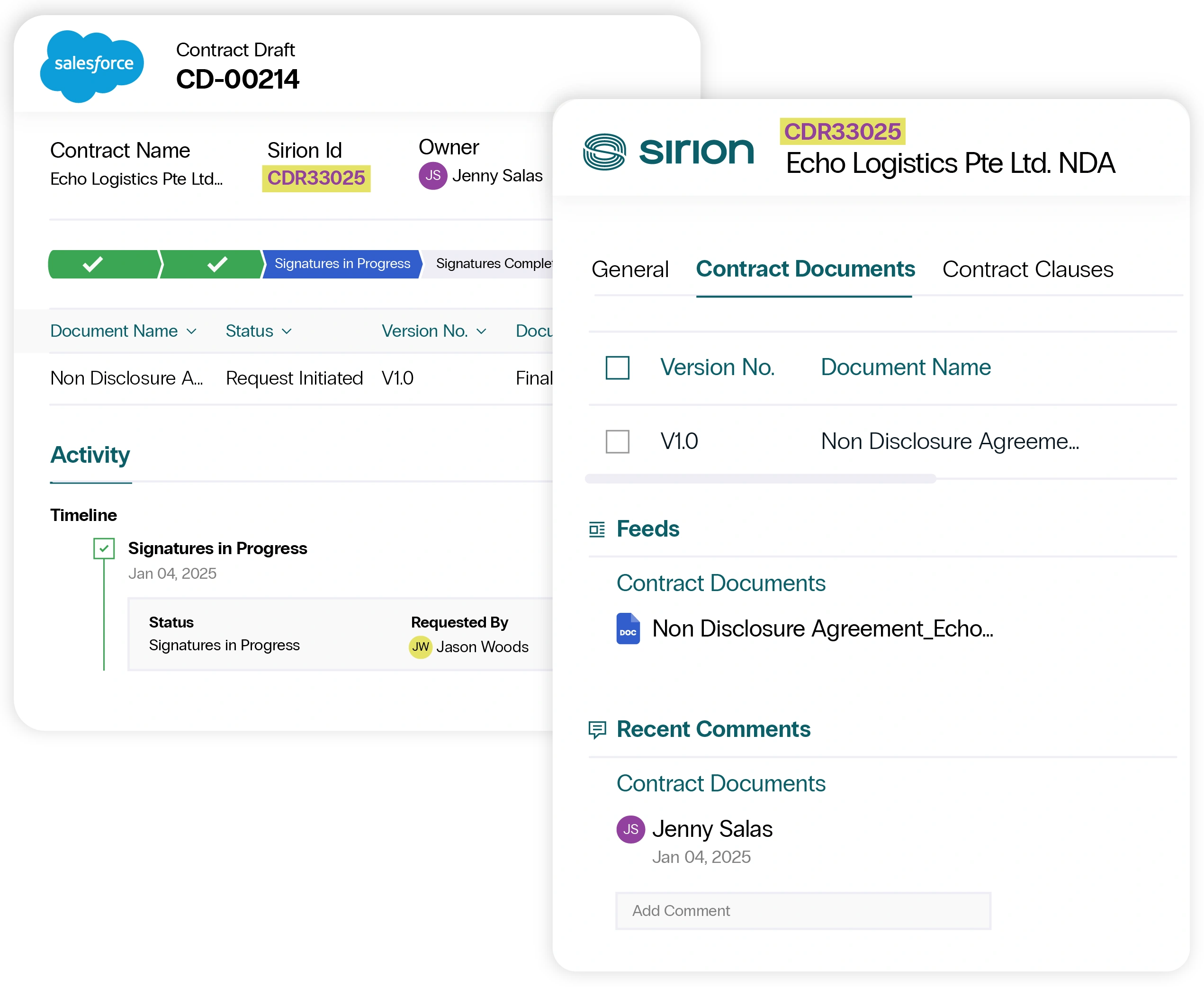 Empower teams to work with contracts with the tools they trust and use every day. Use OOTB integrations for platforms like Salesforce, SAP, and Microsoft – or leverage robust B2B APIs to connect with any third-party application seamlessly.