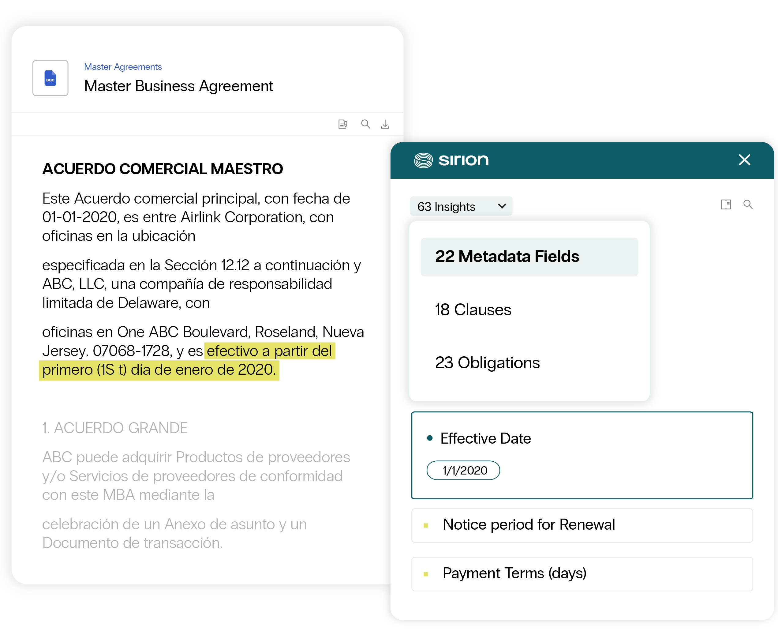 Extract 1200+ fields including metadata, obligations, rate cards and more in 15+ languages – ready for analysis and action.